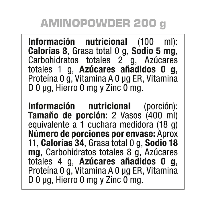 Información nutricional (por porción – 18 g, mezclados en 400 ml):