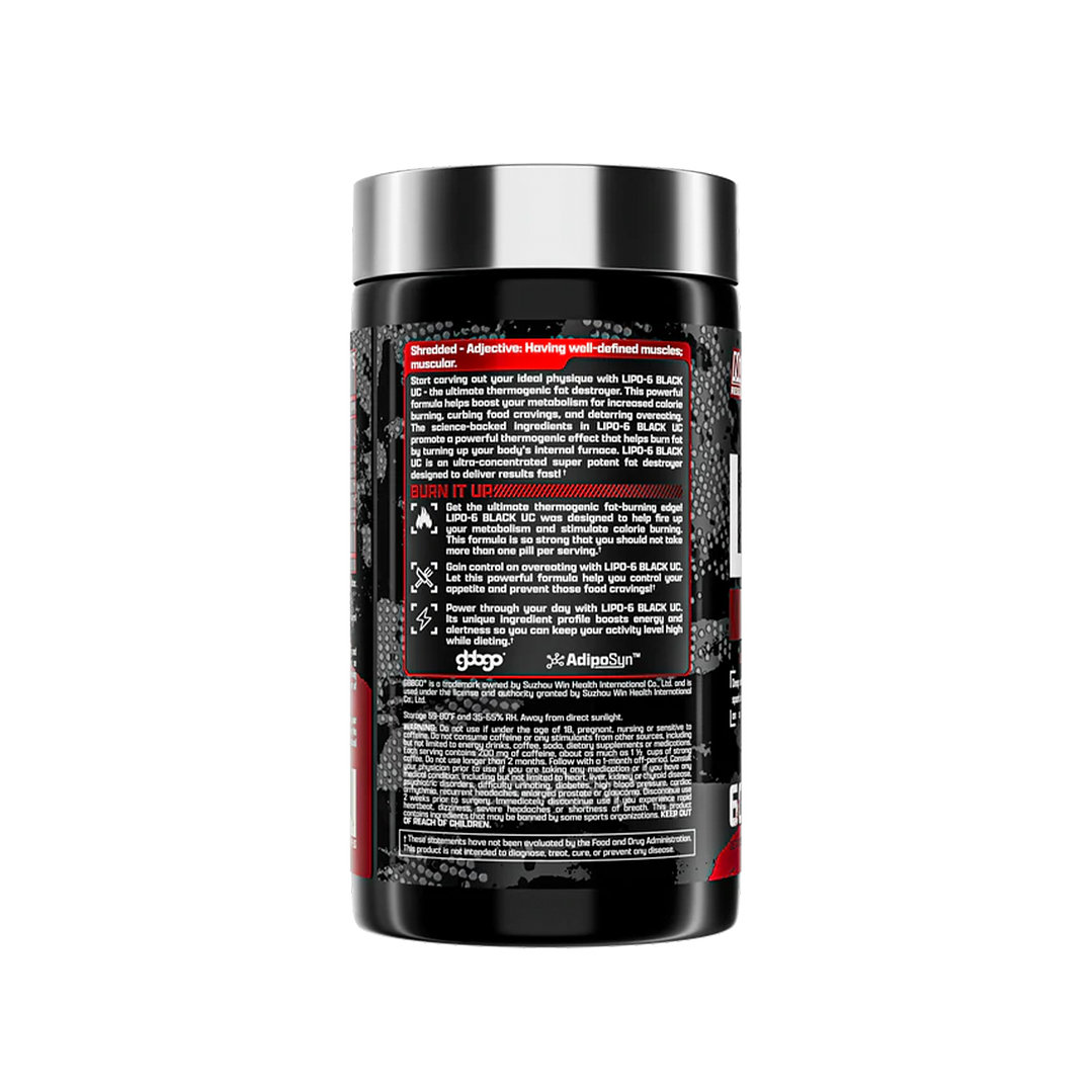 Lipo‑6 Black UC combina termogénicos avanzados en una fórmula ultra alta en potencia, diseñada para acelerar la pérdida de grasa, incrementar energía y mejorar el estado de alerta sin necesidad de tomar más de una cápsula diaria.